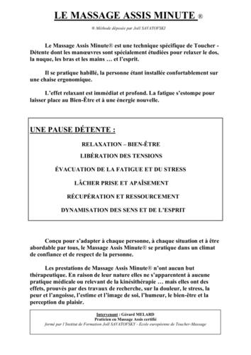 EN BONUS CETTE ANNEE : nous proposons un temps de détente-relaxation, le "Massage-Assis-Minute", par Gérard Mélard, membre du Comité du Réseau Laudato si' (cf fiche jointe)...