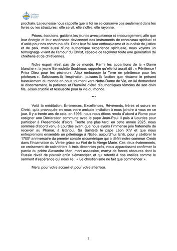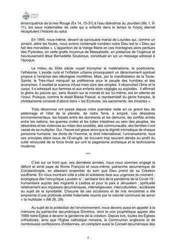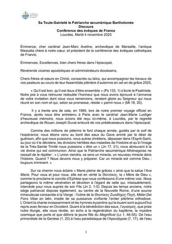 Le patriarche Bartolomée a prononçé un discours devant les évêques réunis à Lourdes hier 4 novembre d'une profondeur et d'une portée remarquables ...