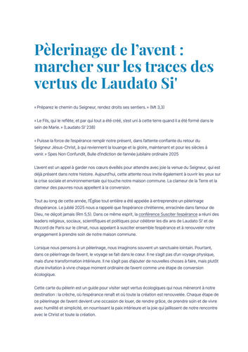 site du Mouvement Laudato si' pour retrouver la totalité du parcours:
