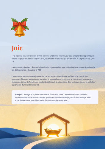 L’avent est un appel à garder nos cœurs éveillés pour attendre avec joie la venue du Seigneur, qui est déjà présent dans notre histoire. Aujourd’hui, cette attente nous invite également à ouvrir les yeux sur la crise sociale et environnementale qui touche notre maison commune. La clameur de la Terre et la clameur des pauvres nous appellent à la conversion.