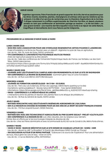 Chaque printemps depuis plusieurs années, Hervé Coves nous rend visite dans les Hauts de France, l’occasion de rencontrer divers publics pour qu’il puisse partager son amour du vivant et nous rappeler que « La Vie est Belle ! ».