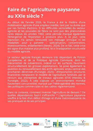 «Faire de l’agriculture paysanne au XXIe siècle?»